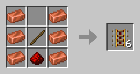 6x Copper Ingot + 1x Redstone Dust + 1x Stick → 6x Powered Rail