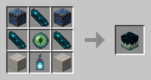 2x Deepslate Lapis Ore + 3x Echo Shard + 2x Mushroom Stem + 1x Eye of Ender + 1x Soul Lantern → 1x Sculk Catalyst